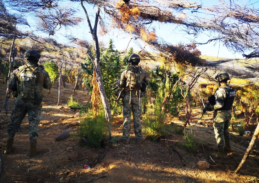 Durante el sobrevuelo se detectaron plantíos de hierba con características similares a la marihuana, por lo que personal perteneciente a la Segunda Brigada de Infantería de Marina, del Segundo Batallón de Infantería de Marina y de la Coordinadora Regional de la Guardia Nacional de Ensenada, realizaron un despliegue terrestre.