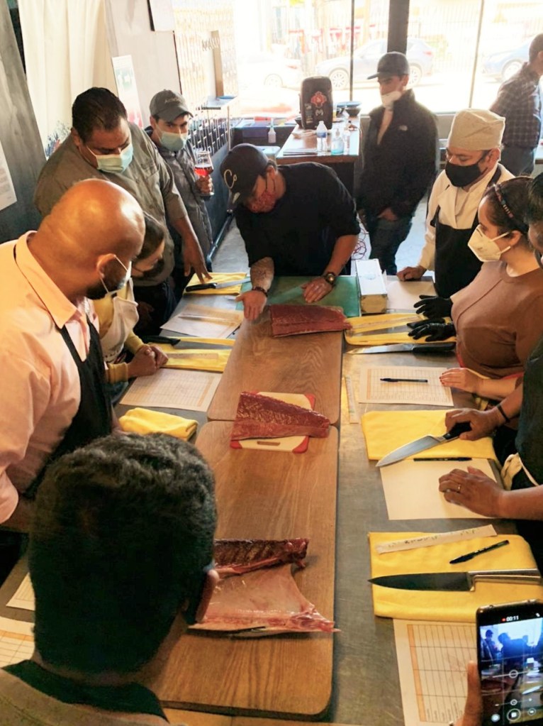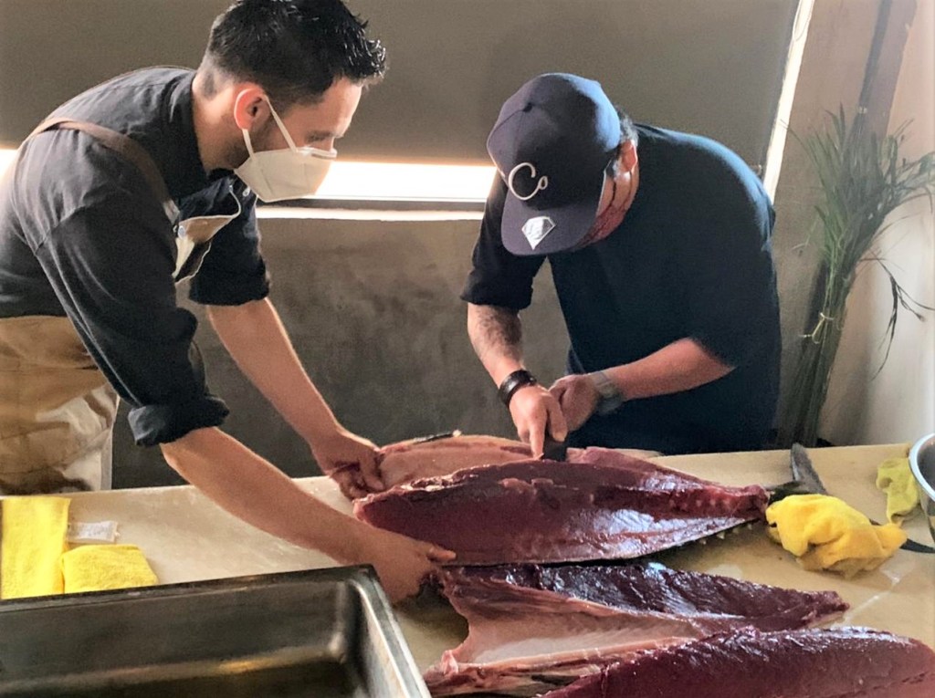 Lo más importante, dijo, es que los comensales vean mejorada su experiencia gastronómica al degustar una variedad de platillos en crudo como tiraditos, carpaccios, sashimis y ceviches, cortados con precisión y tomando el corte correcto de los pescados y mariscos, aunque en esta ocasión el taller se hizo con una pieza de atún.