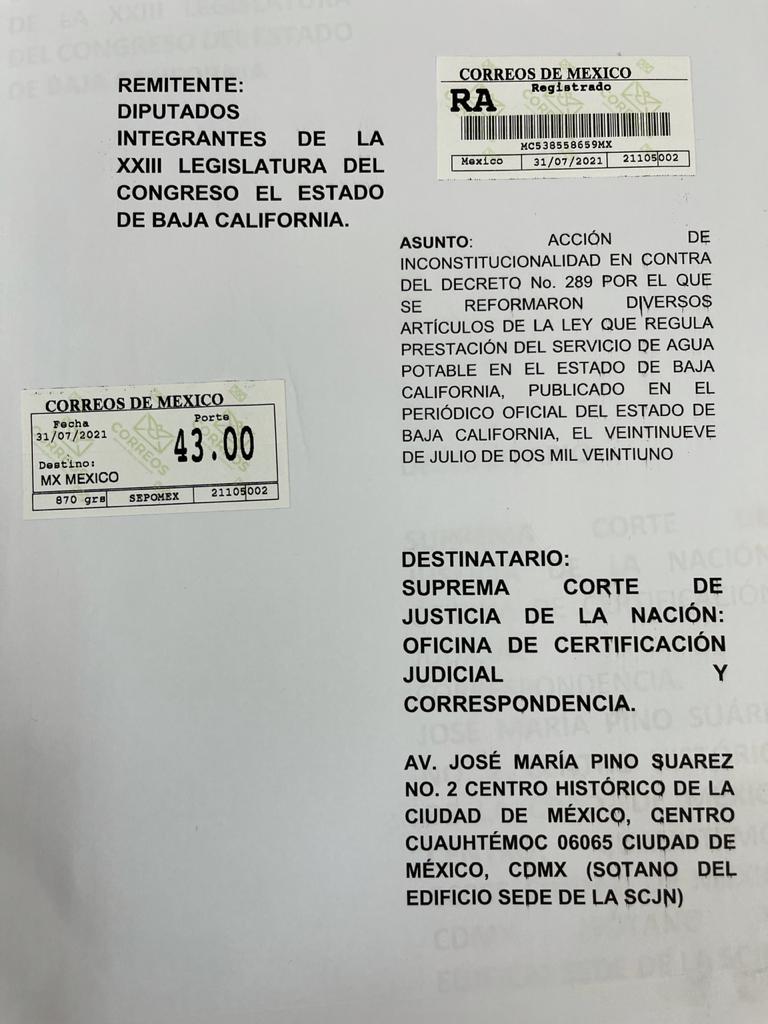 CDMX.- La Suprema Corte de Justicia de la Nación (SCJN) entregó una suspensión al Decreto 289 del Gobierno de Baja California, con lo que suspende la transferencia de los servicios de agua potable y drenaje a los municipios del Estado mientras se resuelve la Acción de Inconstitucionalidad 119/2021.