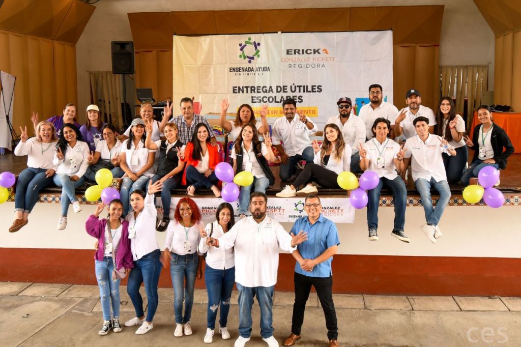 Ensenada, B.C.- Más de 500 mochilas con útiles escolares se entregaron a niños y niñas que estudian preescolar y primaria, en un evento de colaboración entre la regidora Ericka González Pickett y la Asociación Ensenada Ayuda Sin Límite.