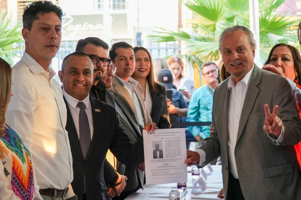 Luis Alberto Hernández Morales, Consejero Presidente del Consejo General del IEEBC, recibió y acreditó la documentación de la plantilla que acompañará al candidato Adrián Trejo y a su suplente, el Arq. Benjamín Peña, en esta contienda que finalizará el día 2 de junio.