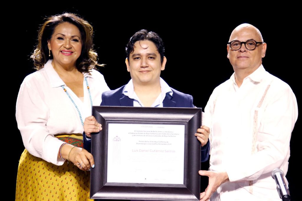 Mexicali, B.C.- La Secretaría de Cultura del Gobierno de México y el Instituto Nacional de Bellas Artes y Literatura (Inbal), mediante la Coordinación Nacional de Literatura (CNL), en colaboración con el gobierno del estado de Baja California, por medio de la Secretaría de Cultura y el Instituto de Servicios Culturales de esta entidad, entregaron el Premio Bellas Artes Baja California de Dramaturgia “Luisa Josefina Hernández” 2024 a Luis Daniel Gutiérrez Salinas por su obra Mariana viene cada mañana.